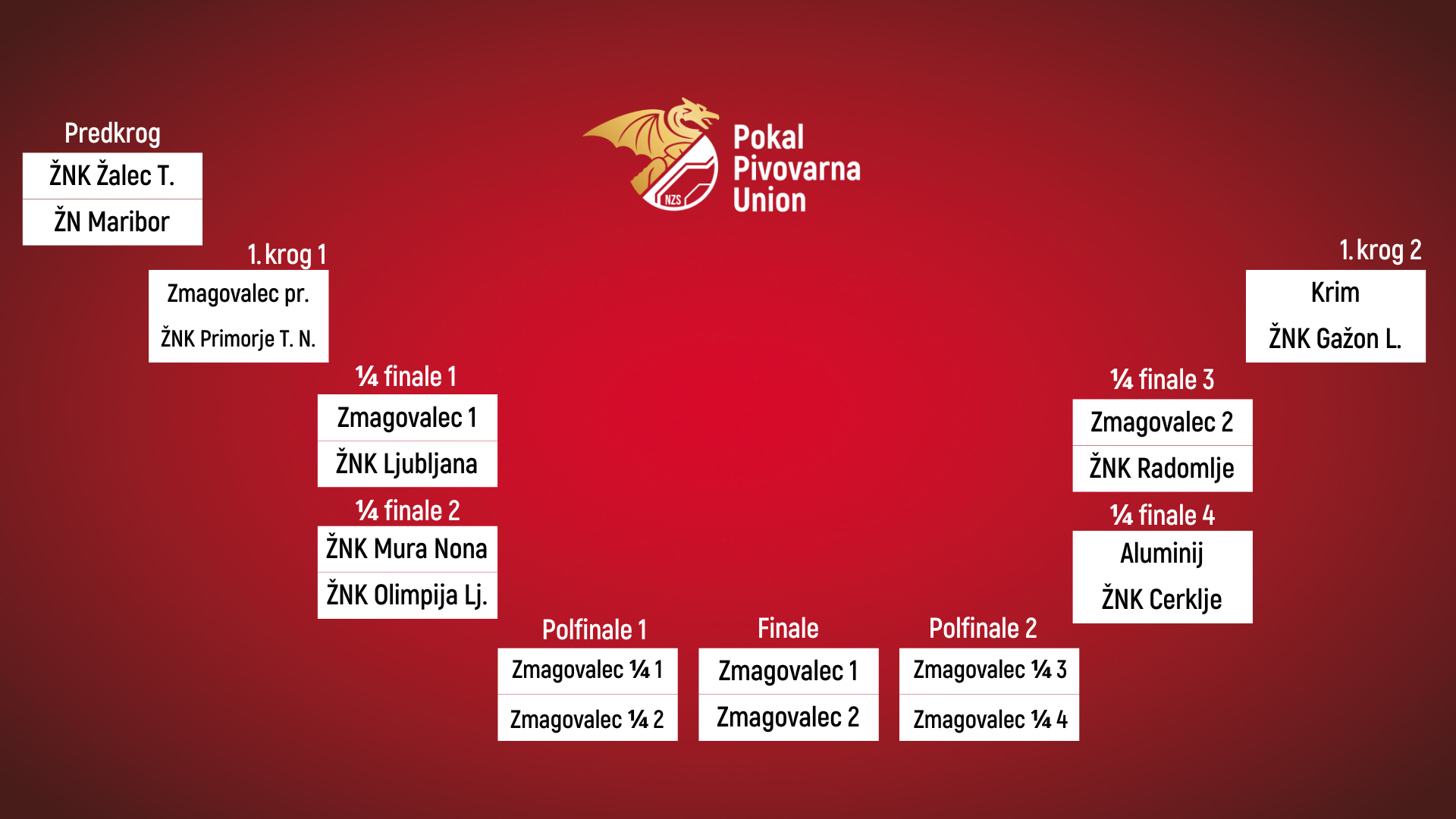 V prostorih Nogometne zveze Slovenije je bil danes tudi žreb Ženskega pokala NZS Pivovarna Union. Tekmovanje se začne s predkrogom 28. avgusta, uvodno tekmo bo gostil ŽNK Žalec. Znana je celotna shema tekmovanja, para 1. kroga in pari četrtfinala.