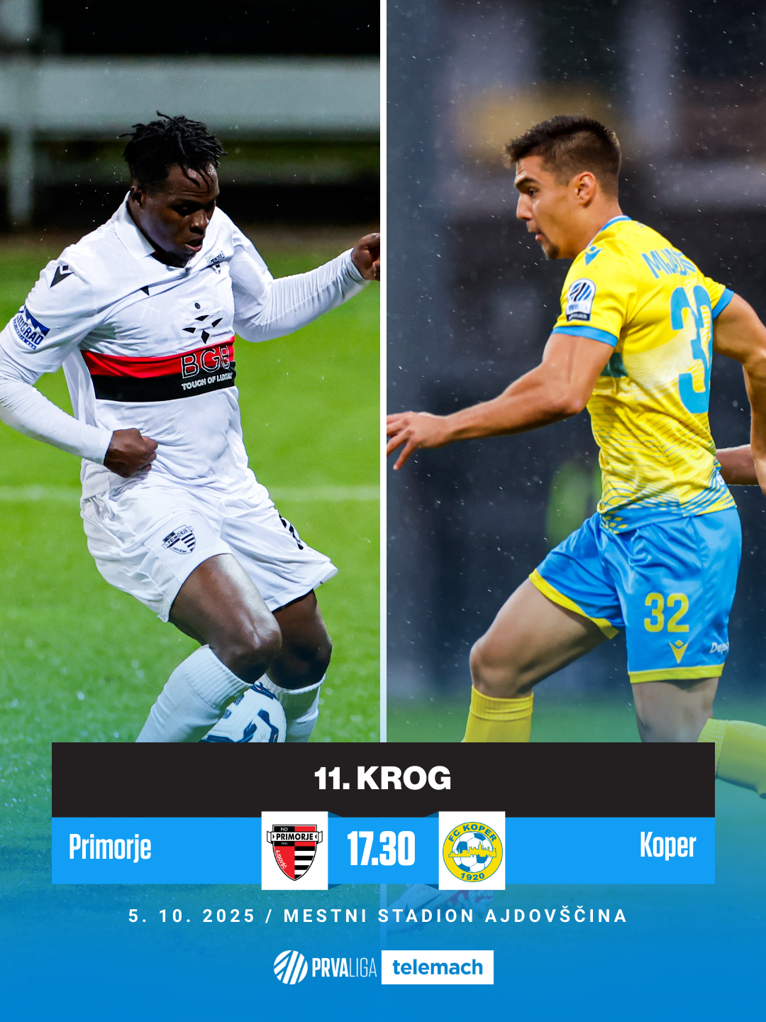 V nedeljo bosta odigrani še dve tekmi, prvi se bodo na igrišče podali nogometaši Primorja in Kopra. Kdo bo dobil primorski obračun v prestolnici burje? Tako Ajdovci kot Koprčani se v 11. krog Prve lige Telemach s porazom, rdeči-črni so izgubili zadnji dve preizkušnji. Po Celjanih, ki so po zaostanku dveh zadetkov prišli do popolnega preobrata, so bili od čete Milana Anđelkovića boljši še Domžalčani in prišli do prve ligaške zmage v sezoni. Primorje je vknjižilo šesti poraz v aktualnem prvenstvu, prvega mu je poleti zadal prav nedeljski nasprotnik. Po avtogolu Denisa Pintola je zmago kanarčkov sredi drugega polčasa potrdil Deni Jurić. Se bodo sinovi burje na domačem igrišču oddolžili za julijski poraz?