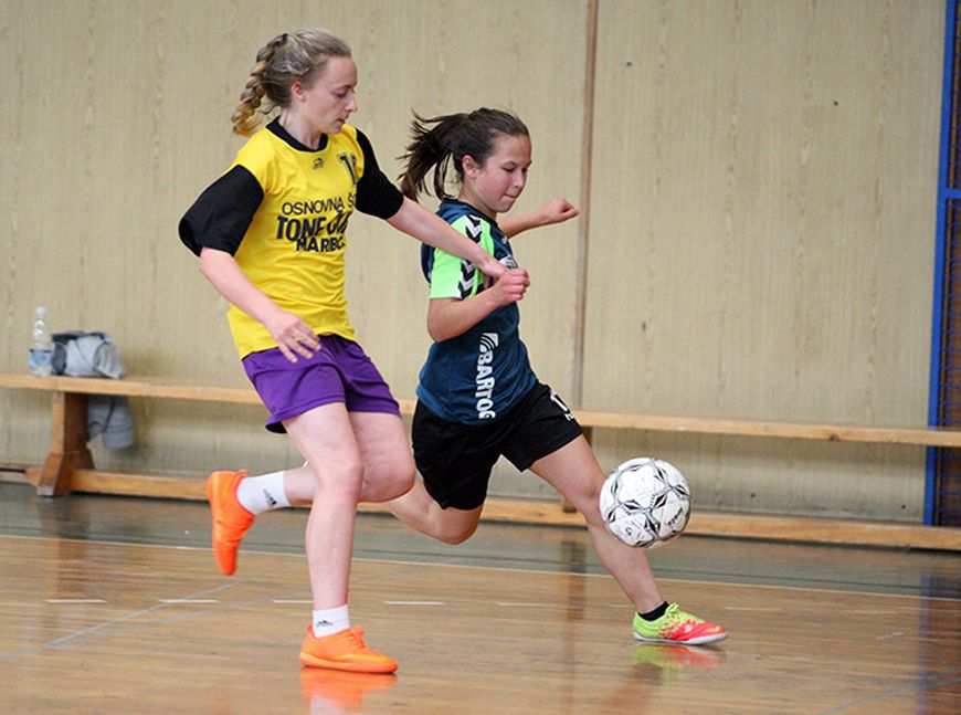 Na prvi polfinalni tekmi so se pomerile učenke iz OŠ Vojnik ter učenke iz OŠ Toneta Čufarja Maribor. Mariborčanke so z dvema goloma Sare Adam in dvema goloma Lune Stefanie Somer prepričljivo premagale ekipo iz Vojnika. Na drugi polfinalni tekmi sta se pomerili domača ekipa iz Trebnjega in učenke iz Solkana. Domačinke so zmagale z dvema goloma Lare Lobe.