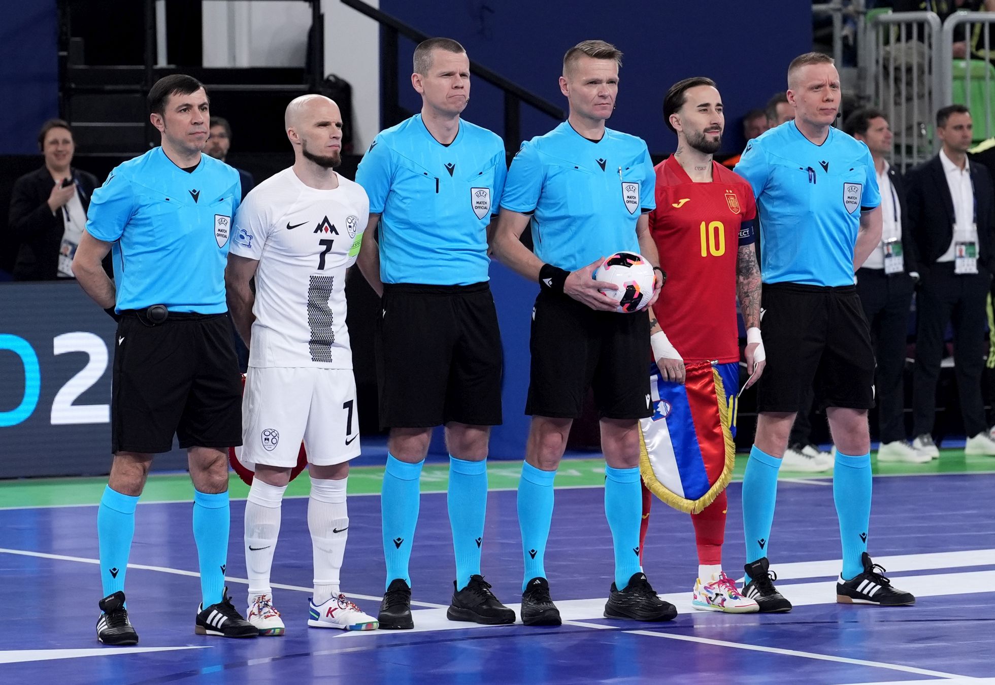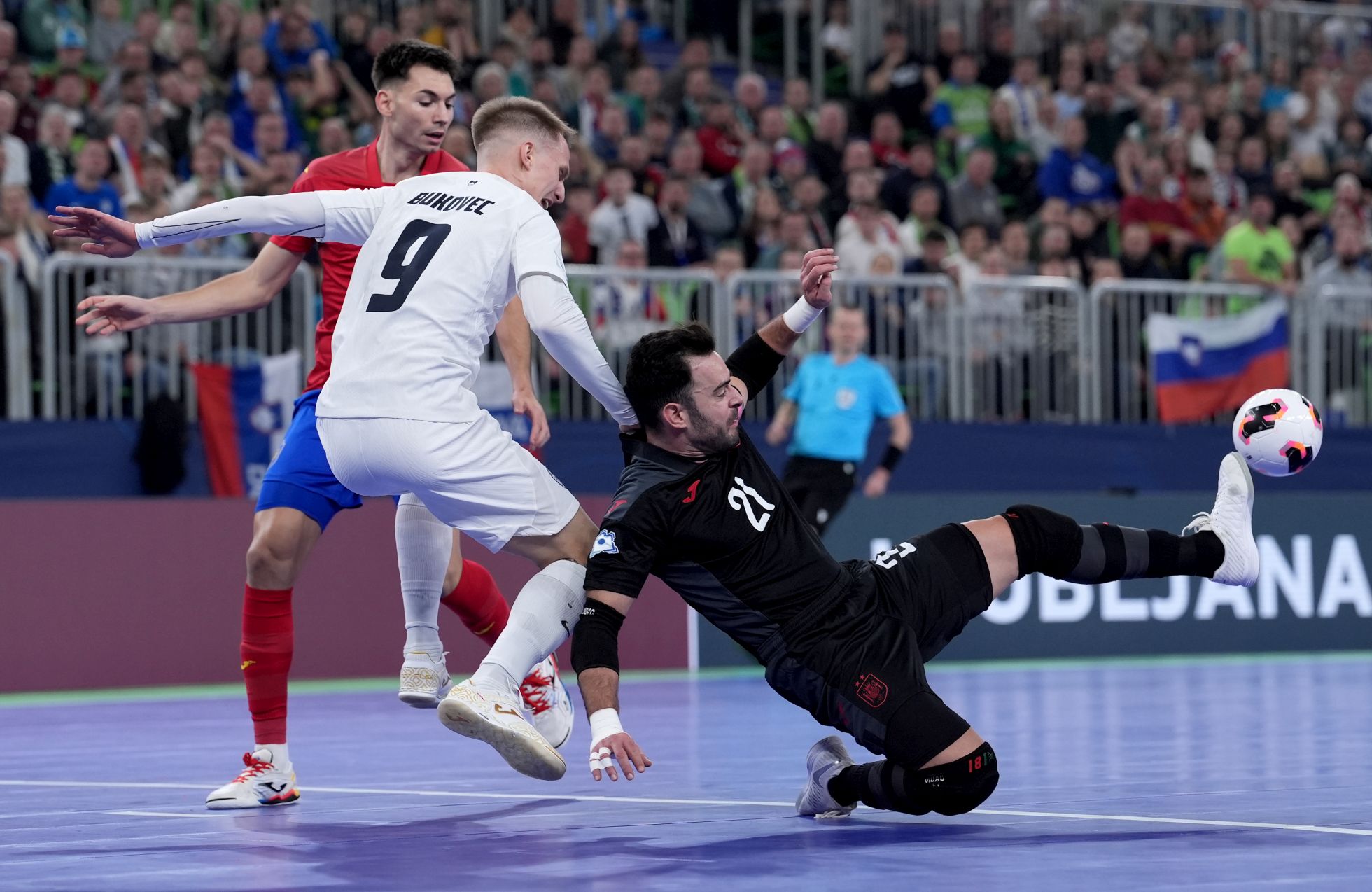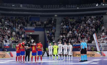 Slovenska futsalska reprezentanca je na prvi tekmi evropskega prvenstva, ki ga Slovenija gosti skupaj z Latvijo in Litvo, v polnih ljubljanskih Stožicah izgubila proti favorizirani Španiji z 1:4 (0:4). Pred tem so Belgijci v okviru skupine C premagali Belorusijo s 4:0.