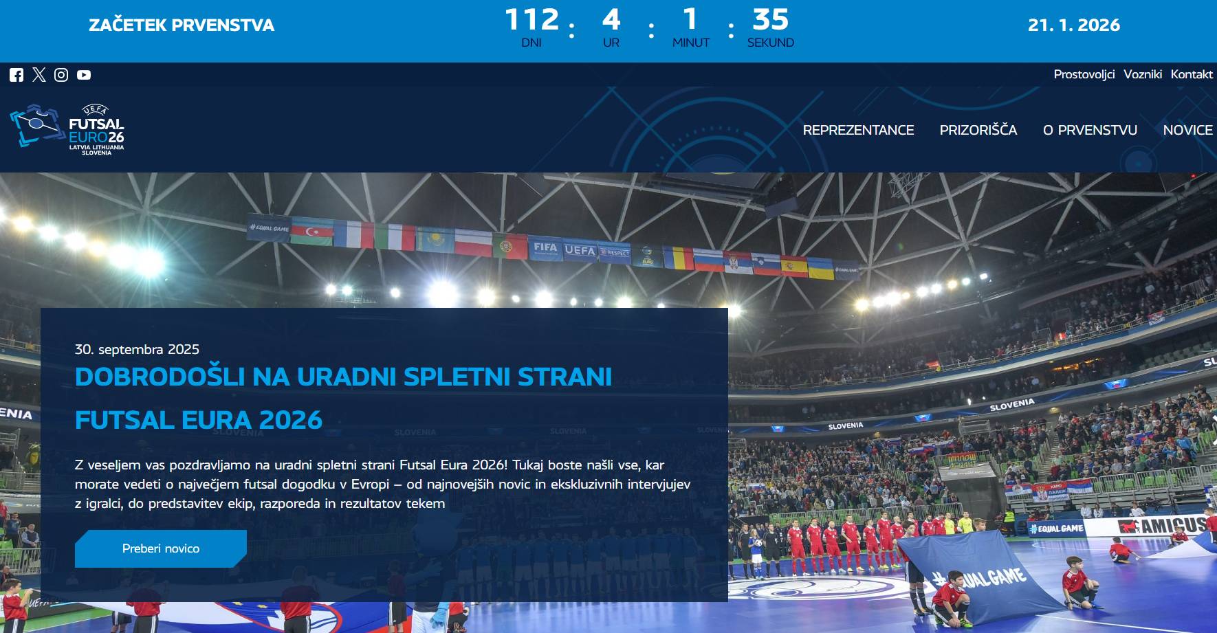 Z današnjim dnem je zaživela uradna spletna stran Futsal Eura 2026! Na njej boste našli vse, kar morate vedeti o največjem futsal dogodku v Evropi – od najnovejših novic in ekskluzivnih intervjujev z igralci, do predstavitev ekip, razporeda in rezultatov tekem.
