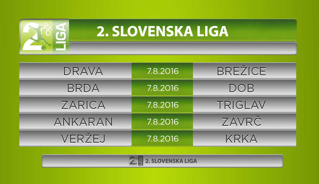 Tako kot lansko poletje, bosta tudi letos oba kranjska drugoligaša, Triglav in Zarica, sezono odprla z medsebojnim dvobojem, ki bo odigran 6. ali 7. avgusta. Po treh prvoligaških sezonah so se v 2. SNL vrnili Zavrčani in Novomeščani. Krka bo uvodoma gostovala v Veržeju, Zavrč pa gostuje v Ankaranu. Pri enem od dveh novincev iz 3. SNL, Brdih, gostuje Dob, Brežičani pa bodo drugoligaški krst prestali v gosteh pri ptujski Dravi.