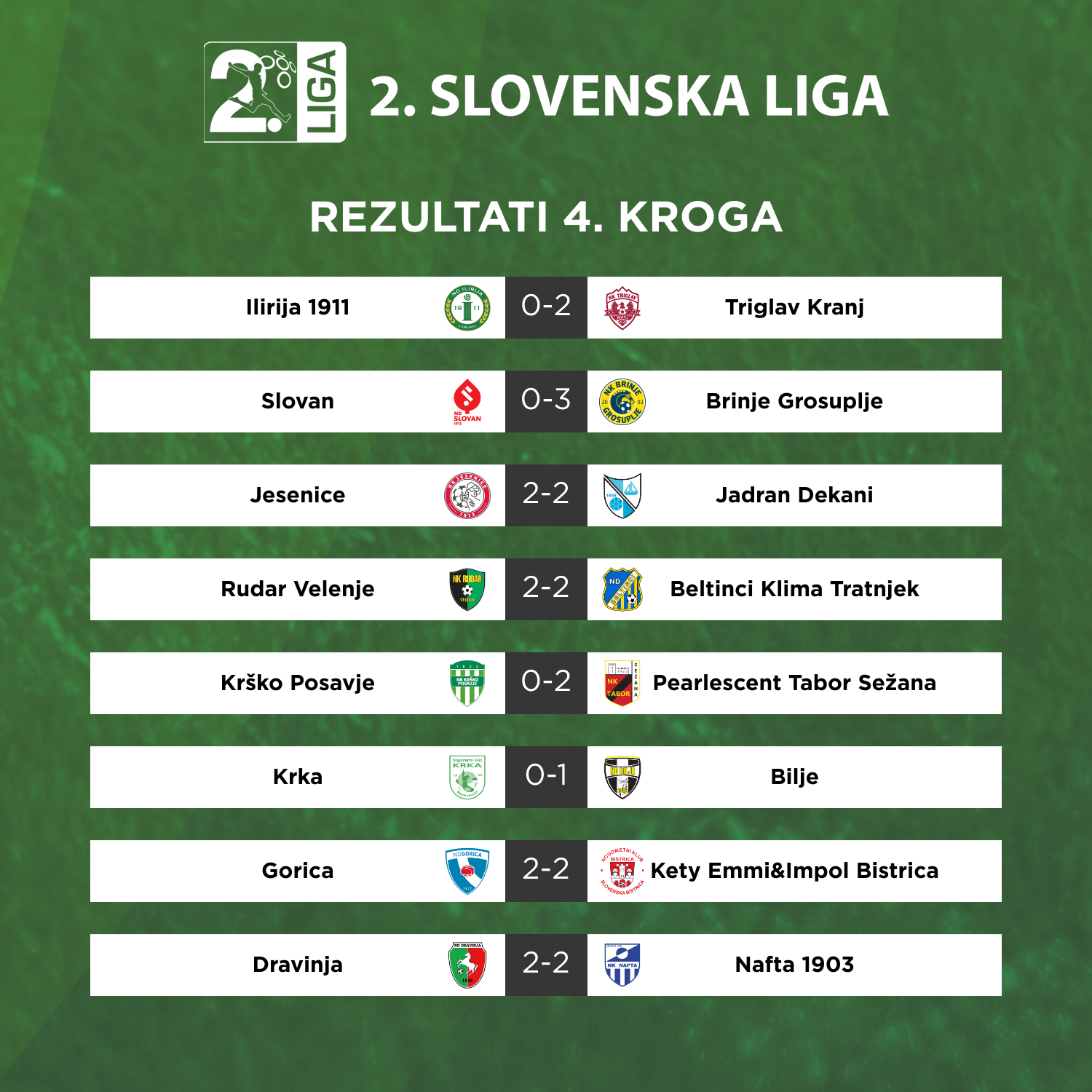 Krka ostaja pri točki iz uvodnega kroga, ko so Novomeščani remizirali v Sežani. Dolenjci so morali v četrtem krogu prvenstva priznati še tretji poraz v nizu, na Portovalu so se minimalne zmage razveselili Biljenci. Osrednji junak Primorcev je bil Stefan Kladar, ki se je v 71. minuti srečanja podpisal pod zadetek odločitve. Bilje, ki so v prejšnjem krogu premagale že Velenjčane, so zdaj pri šestih točkah.