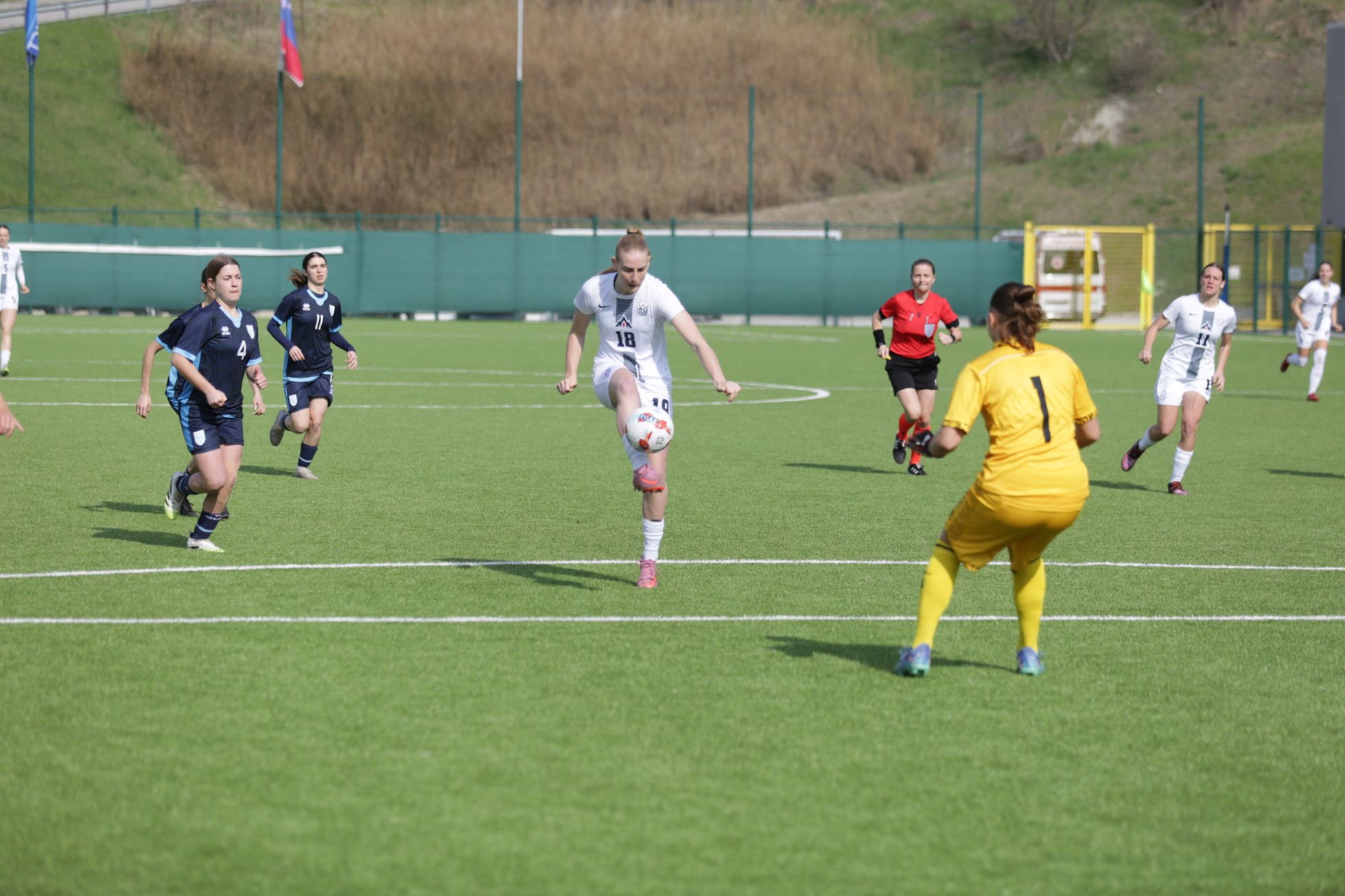 Do konca prvega polčasa so zadele še Neža Trost (12. in 45. minuti - v tem primeru je šlo za strel z več kot 25 metrov) ter Špela Gerbec (v 22. minuti). V drugem delu so gledalci videli še dva gola, po enega v vsaki mreži – za Slovenijo je svoj tretji zadetek dosegla Zala Omerza.