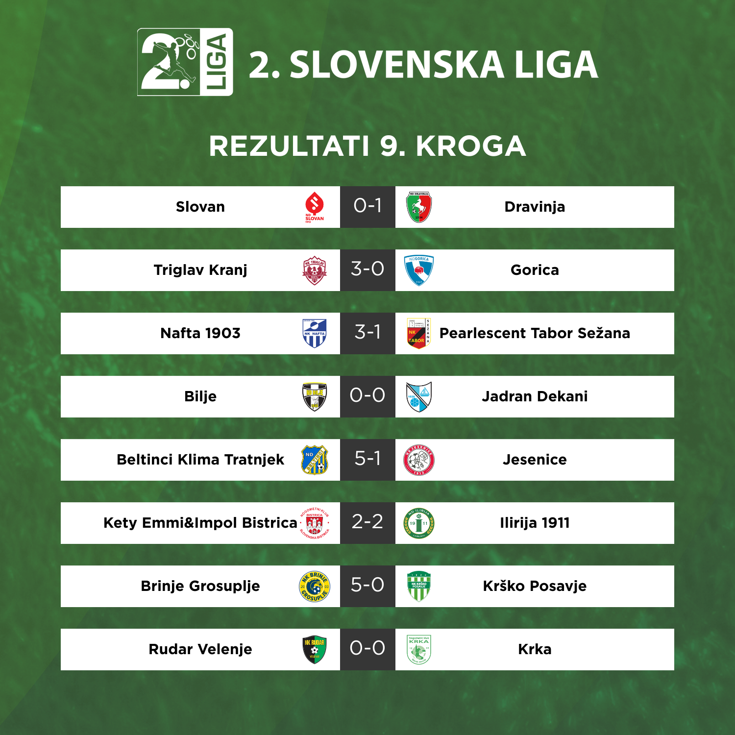 Deveti krog 2. SNL so s tekmo na Kodeljevem odprli nogometaši Slovana in Dravinje. Tako Ljubljančani kot Konjičani so se v petkovo preizkušnjo podali z negativno popotnico, Štajerci pa na osmih predhodnih srečanjih še niso vknjižili zmage. Čakanje se je končalo v prestolnici, osrednji junak Dravinje pa je bil Mateo Koprivc, ki je dve minuti pred odmorom zadel za minimalno zmago čete Almirja Sulejmanovića. Konjičani, ki so zdaj pri štirih točkah, so ujeli Gorico, Slovan po tretjem zaporednem porazu ostaja pri sedmih točkah.