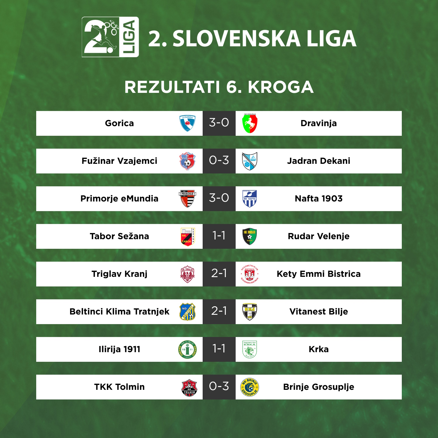 Dekančani so se med tednom v Novem mestu veselili prve zmage v letošnji sezoni, s kompletom točk pa so se vrnili tudi s sobotnega gostovanja na Koroškem. Primorci so mrežo domačih načeli v šesti minuti, ko je z bele točke zadel debitant v dresu Jadrana, Leon Sever. Le šest minut kasneje se je mreža Fužinarja zatresla še drugič, v polno je meril Kebba Kebell Suso. Primorci so udarno vstopili tudi v drugi polčas, že v drugi minuti nadaljevanja tekme je vodstvo povišal Nik Fortuna. Tin Gutić je v 71. minuti zapravil še drugo enajstmetrovko.