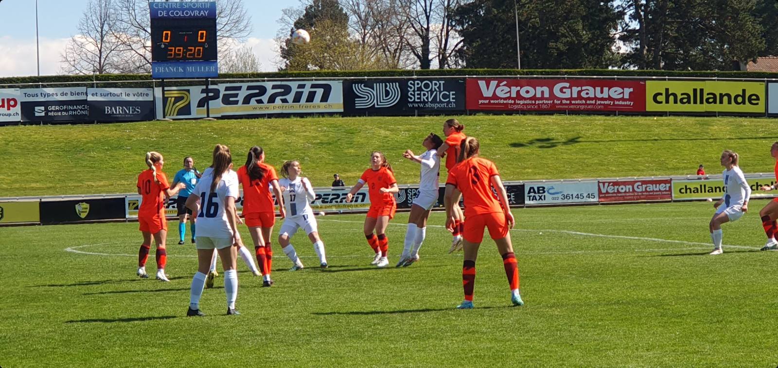 Prvi polčas se je v Nyonu končal brez golov. Slovenija je enkrat pomerila v okvir angleških vrat, Anglija pa trikrat. Obe golmanki, tudi naša Iva Kocijan, sta se izkazali s po eno obrambo v prvih 45 minutah.