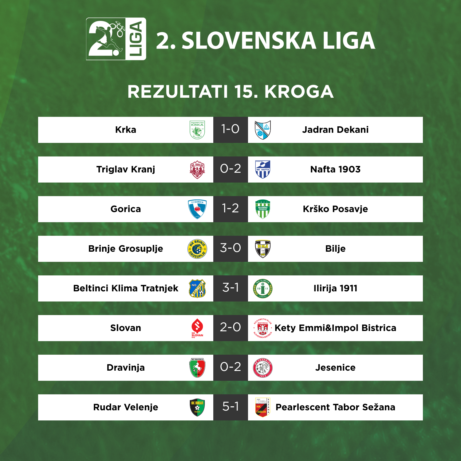Krka je podaljšala črno serijo Gorice, derbi kroga v Sežani pa je pripadel Grosupeljčanom. V Šiški in Dekanih je padlo kar sedem golov, zmage pa so se razveselili nogometaši Triglava in Dravinje. Po zmagi proti Biljam na vrhu ostaja Nafta 1903.