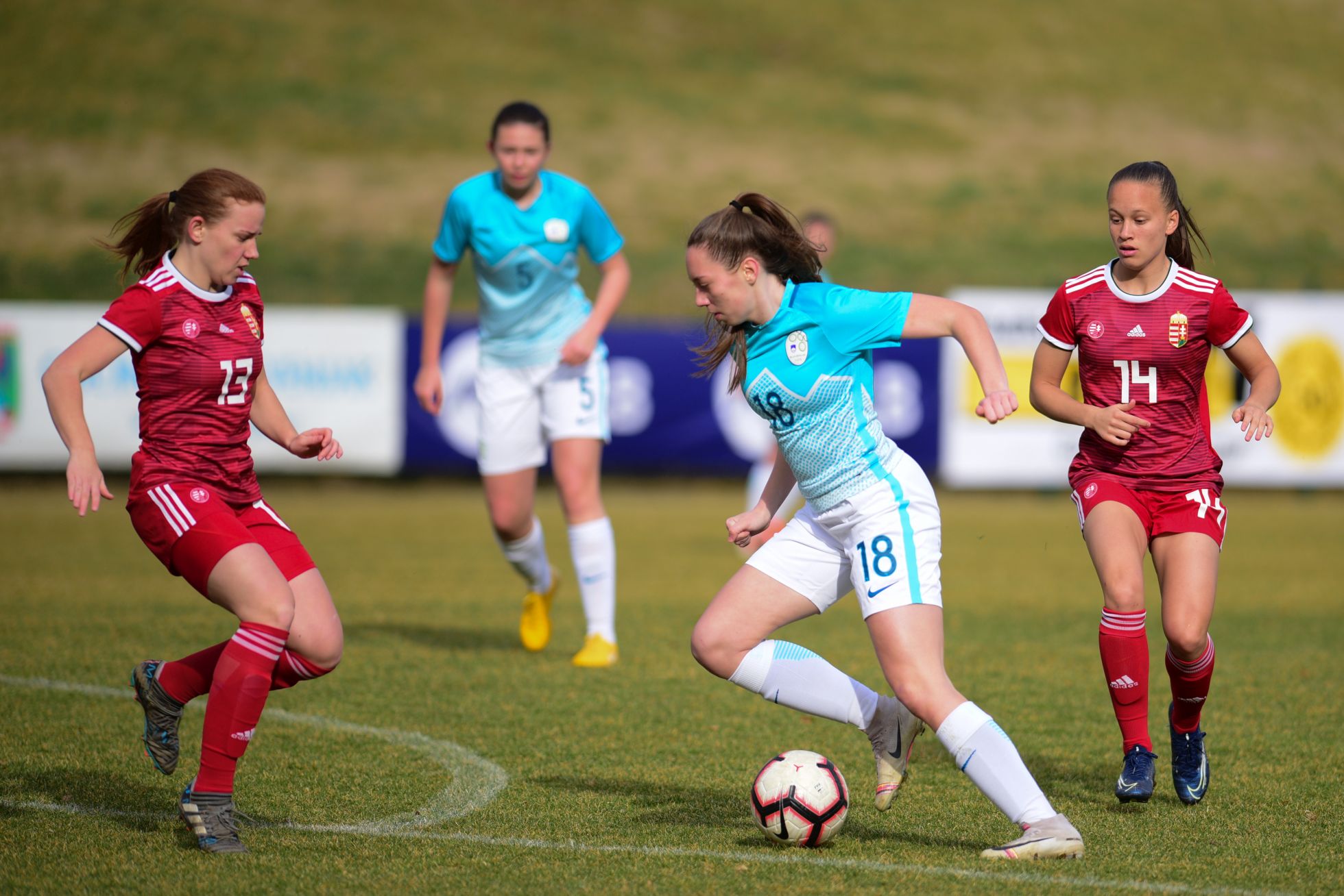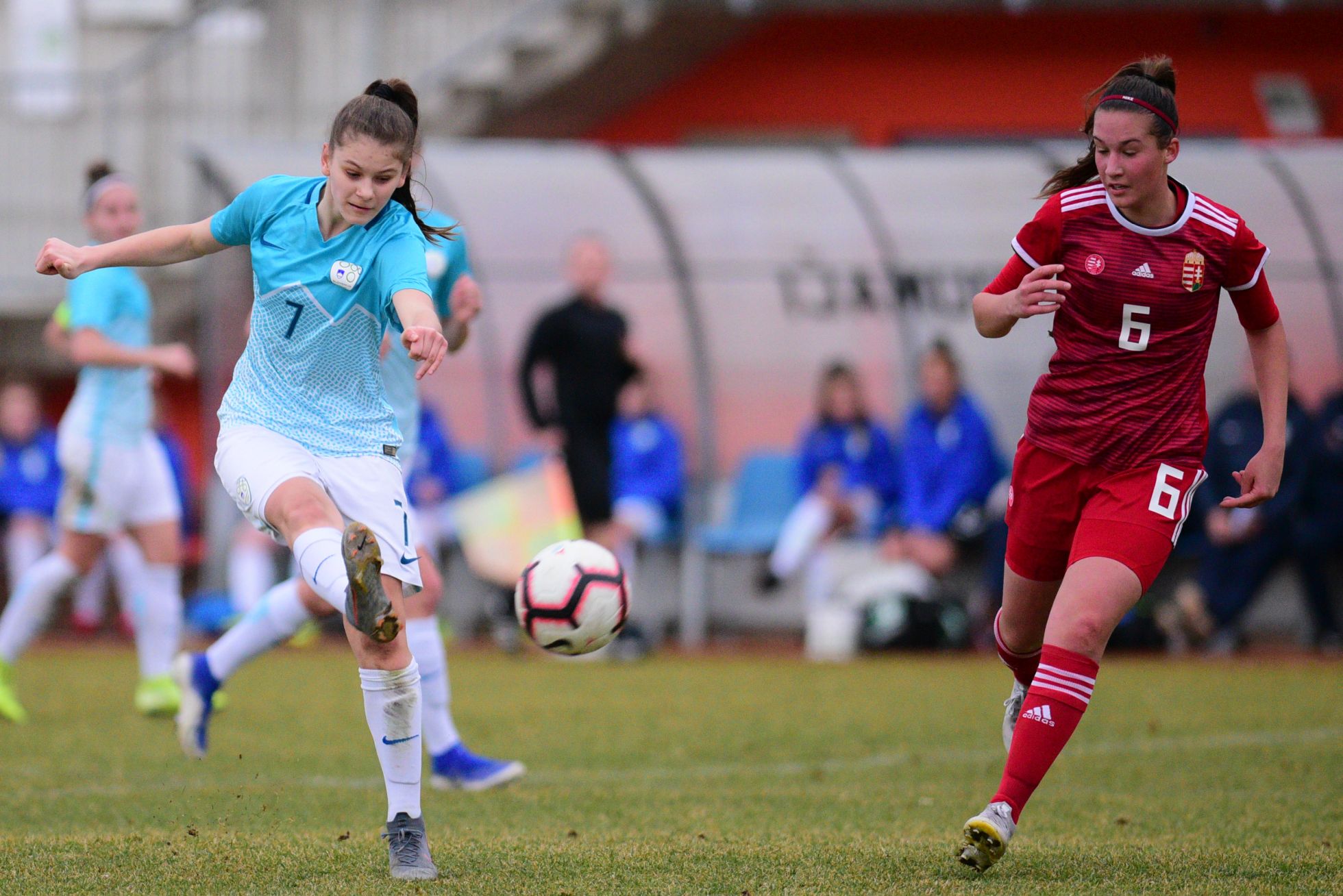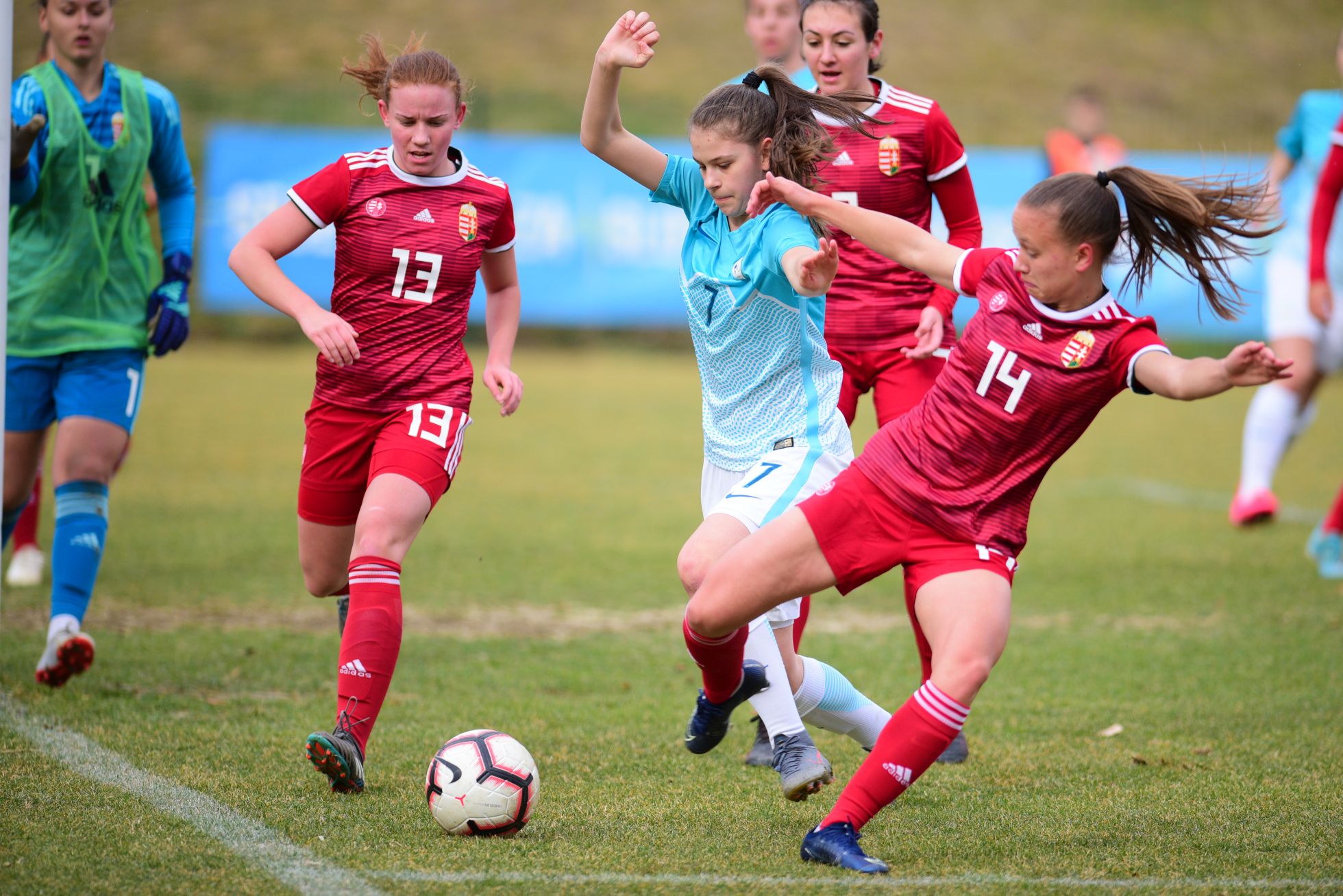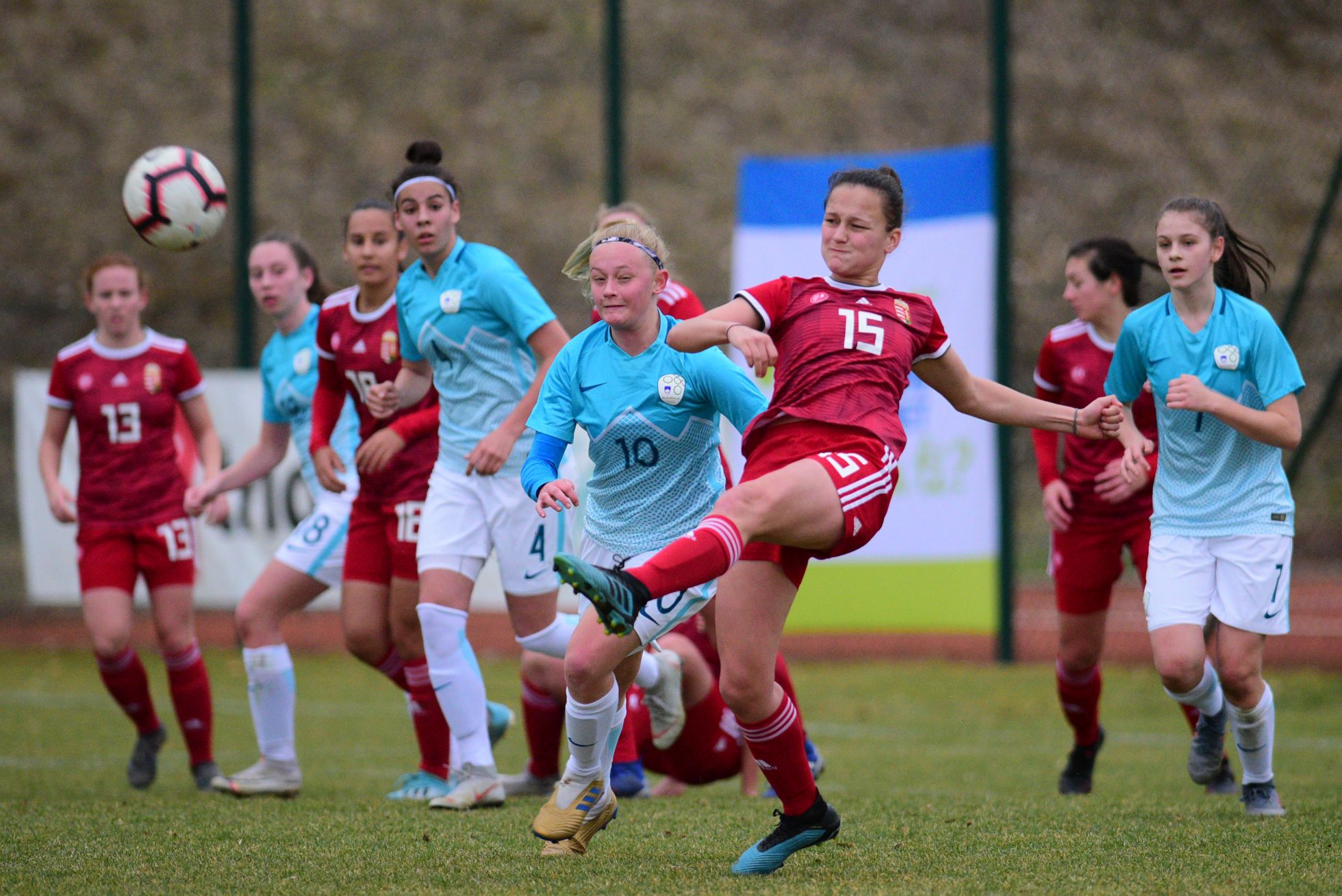 Slovenija je podjetno začela tekmo, uvodoma je zbrala tudi štiri kote, a podaje niso bile tako natančne kot v 27. minuti, ko je madžarska vratarka dobro posredovala po podaji na drugo vratnico in strelu naše reprezentantke. Gostje so povedle v 19. minuti, ko je soigralka s podajo za hrbet naše obrambe lepo zaposlila Emoke Papai, ki je matirala našo vratarko.