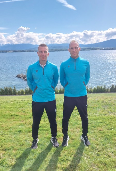 Med ponedeljkom in petkom sta bila v Švici del konsolidacijskega 61. Uefa Core (Centre of refereeing excellence) seminarja za mlade nadarjene sodnike, ki še nimajo statusa mednarodnih sodnikov ponovno tudi Mateo Tozan iz Škofij (MDNS Koper- na sliki levo) in pomočnik sodnika Jure Jamnik iz Škofje Loke (DNSG Kranj- na sliki desno).