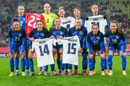 Kaja Eržen (ACF Fiorentina ITA), Melania Pasar (Budapest Honved FC MAD), Lara Prašnikar (Eintracht Frankfurt NEM), Korina Lara Janež (1. FC Union Berlin NEM), Dominika Čonč (F.C. Como Women ITA), Nina Kajzba (Parma F.C. ITA), Lana Golob (Bologna FC), Kaja Korošec (Paris F.C. FRA), Maja Sternad (SV Werder Bremen NEM), Nina Predanič (Grasshoper ŠVI), Chantal Marie Kirtzakis (SV Hegnach 1947 NEM), Lara Klopčič (ŽNK Ljubljana), Mirjam Kastelec (ŽNK Ljubljana), Špela Kolbl (ŽNK Mura), Sara Makovec (ŽNK Mura), Ana Milović (ŽNK Olimpija Ljubljana), Maša Osojnik (ŽNK Olimpija Ljubljana), Živa Rakovec (NK Mura), Pia Božič (Jacksonville university ZDA). Selektor: Saša Kolman.