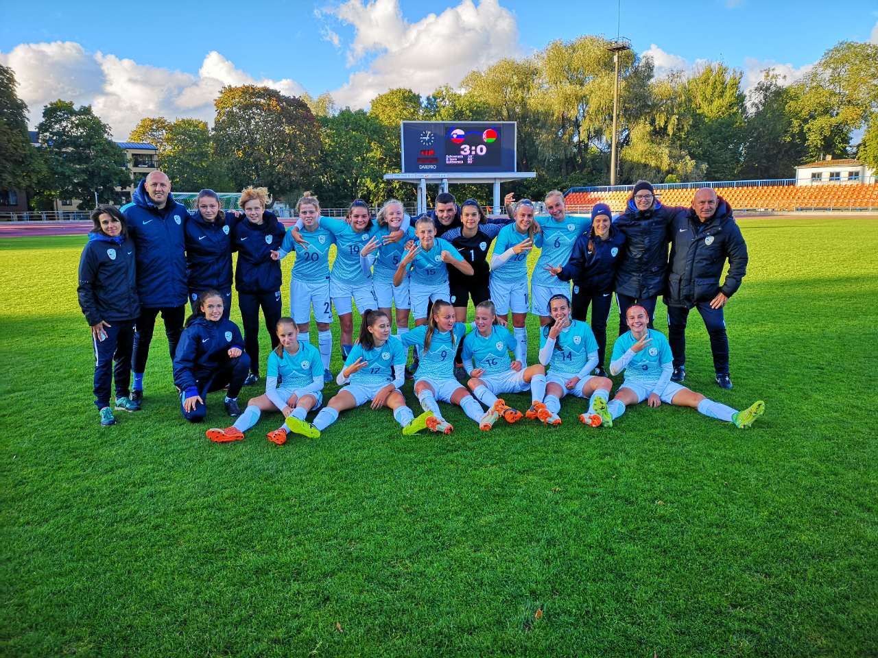 Slovenska dekliška reprezentanca do 17 let je izvrstno začela nastop v kvalifikacijah za Euro 2019. Varovanke selektorice Tine Kelenberger so na prvi tekmi s 3:0 porazile Belorusijo.