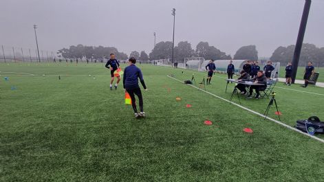 Program se je pričel zgodaj zutraj na igrišču z umetno travo ob severni ljubljanski obvoznici, kjer je bilo pod vodstvom strokovnjaka za fizično pripravo Mitje Novaka na sporedu preverjanje telesne pripravljenosti. Sodniki so opravljali SDS (Single – Double – Single) prekinitveni test, ki poteka v izmenjavi intenzivnega teka in počitka ter 2x test hitrost, kjer so morali preteči razdaljo 40 metrov v 6 sekundah, pomočniki pa so poleg testiranja po metodi ARIET (Assistant Referee Intermittent Endurance Test) opravljali še sprint in test agilnosti (CODA).