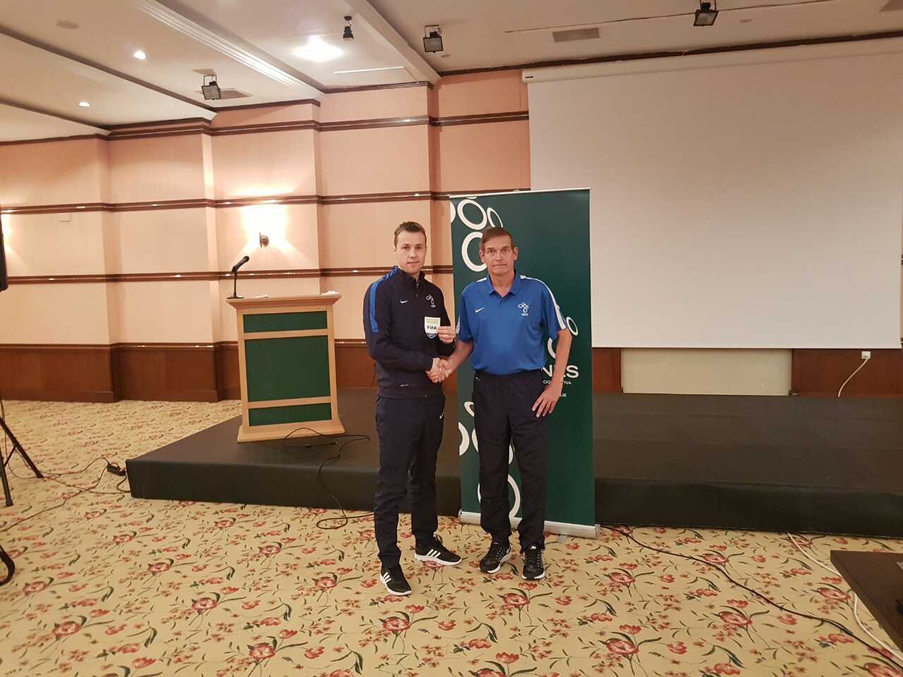 Strokoven seminar sodnikov se je včeraj končal s podelitvijo mednarodnih grbov za leto 2017, ki jih je podelil predsednik ZNSS Vlado Šajn. Prvič so imeli čast prejeti grb sodnik Rade Obrenovič in pomočnika sodnika Grega Kordež in Tomislav Pospeh.