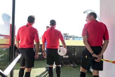 Na poslednjem obračunu s piščalko v roki so bili s članom MDNS Nova Gorica včeraj še pomočnika sodnika Matej Žunič in njegov brat Tadej Jug, četrti sodnik Alen Bubek ter video sodnika Rade Obrenović (VAR) in Dragoslav Perić (AVAR). Matej Jug je pri svetovni nogometni zvezi FIFA certificiran kot video sodnik (VAR) ter uvrščen na mednarodno listo video sodnikov, v Novembru 2024 pa je opravil tudi licenciranje za nove kontrolorje sojenja, ki ga pri Zvezi nogometnih sodnikov Slovenije organiziramo na vsaka tri leta.