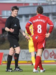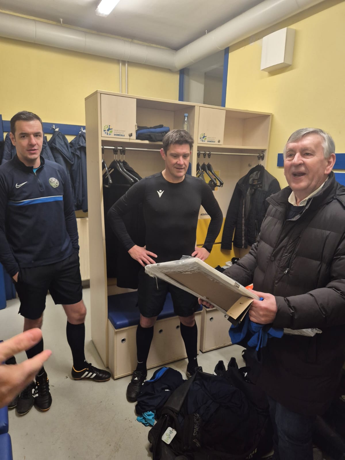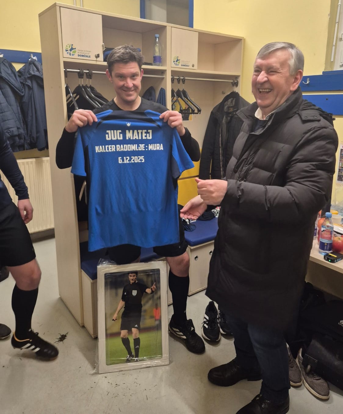 Član komisije za sodniške zadeve pri NZS, kontrolor sojenja in podpredsednik ZNSS Zoran Novarlić je internacionalcu iz Severne Primorske po koncu včerajšnje tekme sodniku v garderobi čestital in mu v spomin podelil dres slovenske reprezentance z navedbo datuma in zadnje tekme.