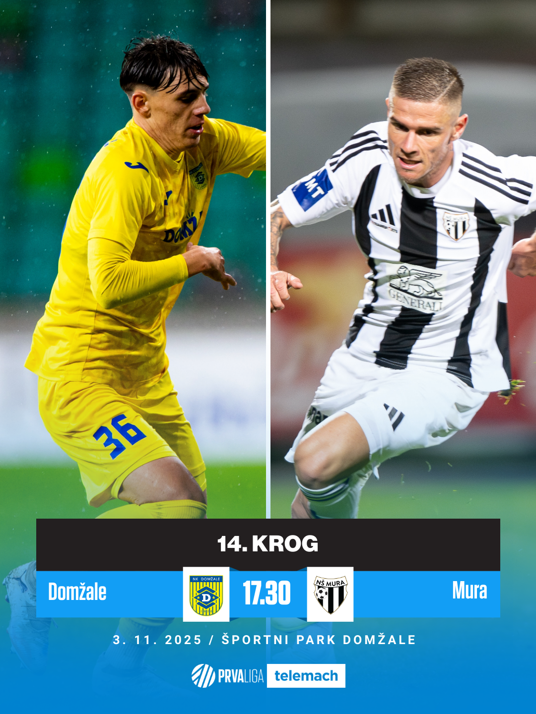 Štirinajsti krog Prve lige Telemach bodo s ponedeljkovo tekmo zaključili nogometaši Domžal in Mure. Domžalčani v dvoboj začelja lestvice vstopajo s skalpom Olimpije, Sobočani pa so v prejšnjem krogu kot prvi v sezoni premagali Celjane. Kdo bo po odmevni zmagi vknjižil nove točke? V obeh taborih bi bili povsem zadovoljni zgolj z zmago, Domžalčani bi se z njo točkovno poravnali s Prekmurci, le-ti pa bi se z novim kompletom točk znova oddaljili od zadnjeuvrščenega moštva državnega prvenstva. Avgusta so točke pripadle Sobočanom, domžalska mreža se je zatresla trikrat, a rumena družina v zadnjih tednih kaže neprimerno boljše predstave. Domžalčani so na zadnjih štirih tekmah izgubili zgolj z Mariborom, ob Olimpiji pa so na kolena spravili Primorje.