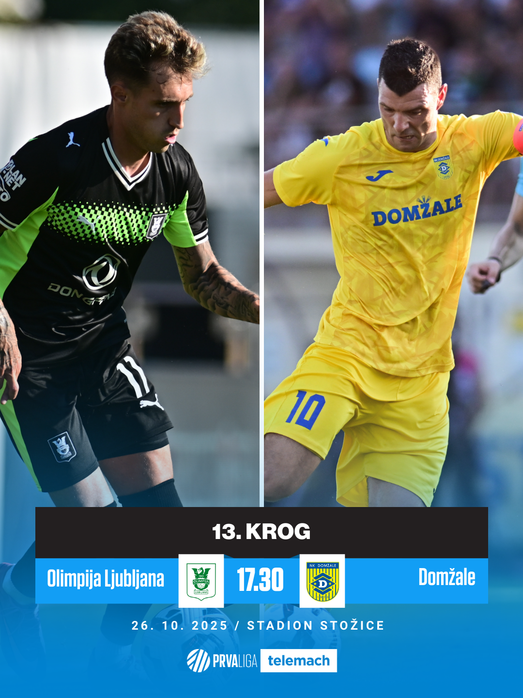 Še dve tekmi 13. kroga Prve lige Telemach bosta odigrani v nedeljo, Olimpija bo v sosedskem obračunu gostila Domžale. Kdo se bo veselil v Stožicah? Ljubljančani v zadnjih dveh krogih niso slavili zmage, so pa na prvi tekmi po oktobrskem reprezentančnem premoru prekinili zmagovalno serijo Celjanov. Zmaji so v knežjem mestu iztržili remi brez doseženih zadetkov, vodilna ekipa prvenstva pa prvič v aktualni sezoni na ligaški tekmi ni dosegla gola. Lahko zeleno-beli dobro obrambno predstavo v nedeljo nadgradijo še z nevarnejšo in učinkovitejšo igro v napadu? Aktualni državni prvaki bodo v dvoboju z zadnjo ekipo prvenstva branili vlogo favorita, ki pa jo bodo morali potrditi na zelenici.