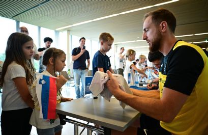 Slovenska nogometna reprezentanca je pred današnjim popoldanskim treningom v Nacionalnem nogometnem centru Brdo razveselila otroke kupcev paketnih vstopnic za domače kvalifikacijske tekme v letu 2025. Ker je slednjih rekordno veliko, je o srečnežih, ki so se lahko udeležili današnjega druženja z igralci, odločal žreb.