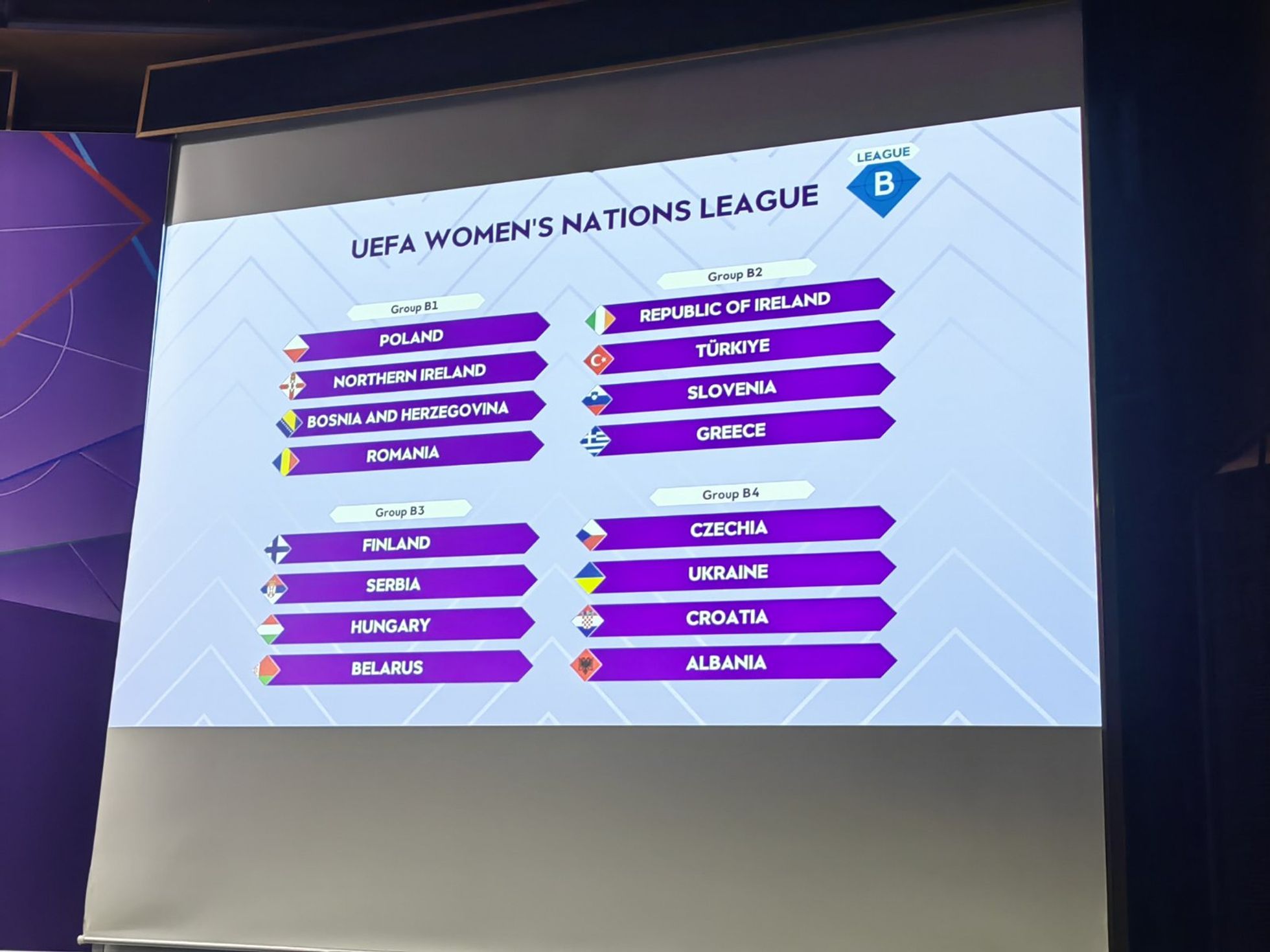 Danes je bil v Nyonu opravljen žreb pred že 2. izvedbo Uefine Ženske lige narodov. Slovenija se je vrnila v Ligo B. Žreba sta se udeležila selektor Saša Kolman in Uroš Juračič, tehnični vodja ženske reprezentance. Slovenija v skupini B2, ob njej še Republika Irska, Grčija in Turčija.