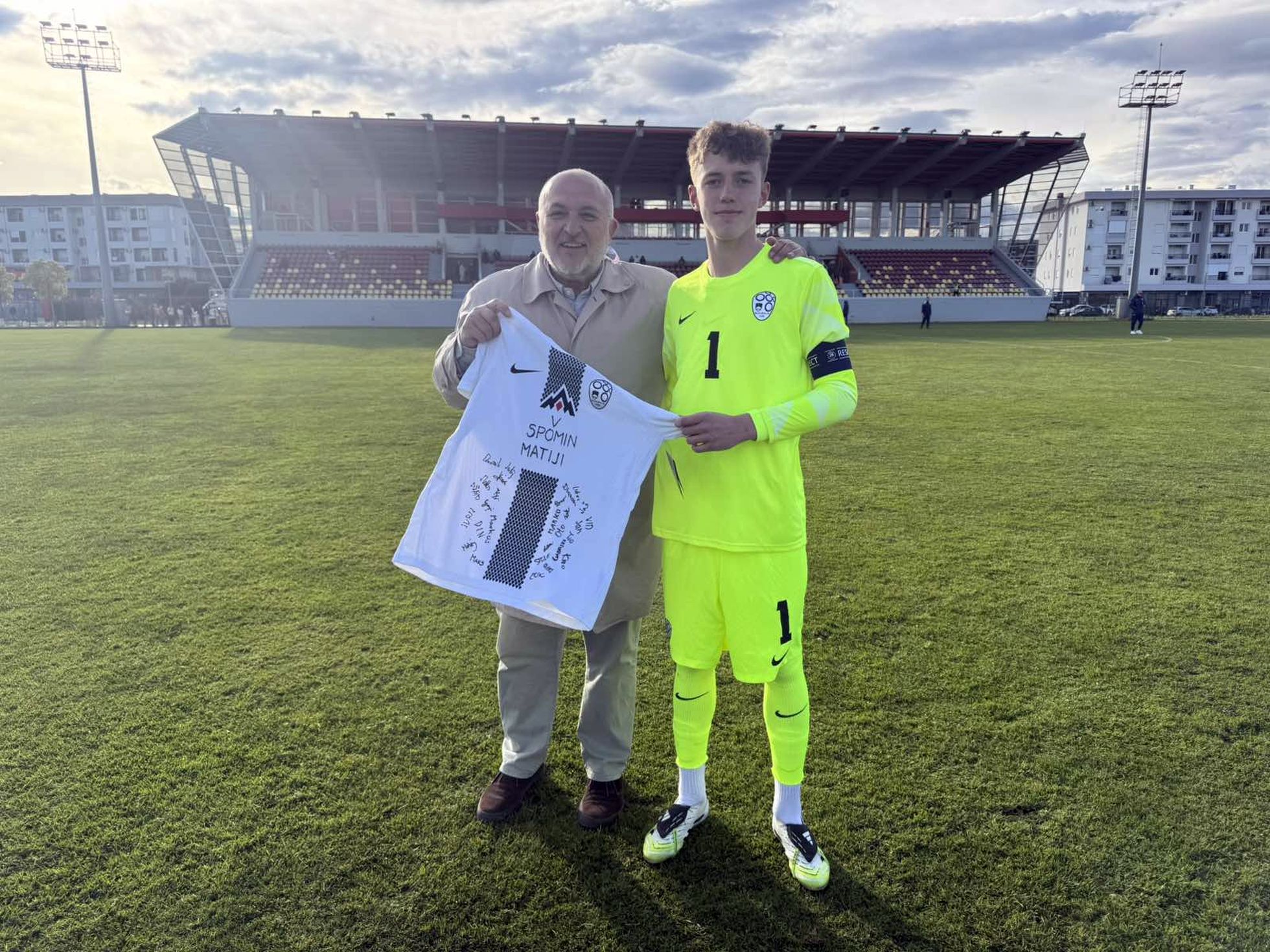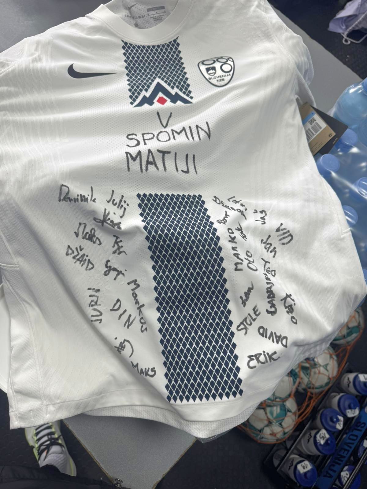 Ob tej priložnosti je naša reprezentanca očetu pokojnega Matije Šarkića v znak spoštovanja podarila dres slovenske reprezentance.