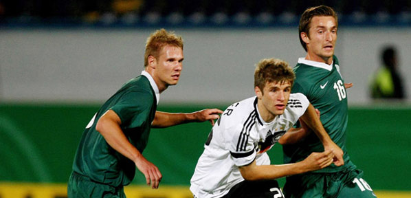Postava Nemčije: Sippel, Schwaab, Höwedes (46. Langkamp), Badstuber, Schmelzer (61. Bastians), Kroos (68. Choupo-Moting), Hummels, Hegeler, Sam (75. Rudy), T. Müller (68. Schindler), Schieber.