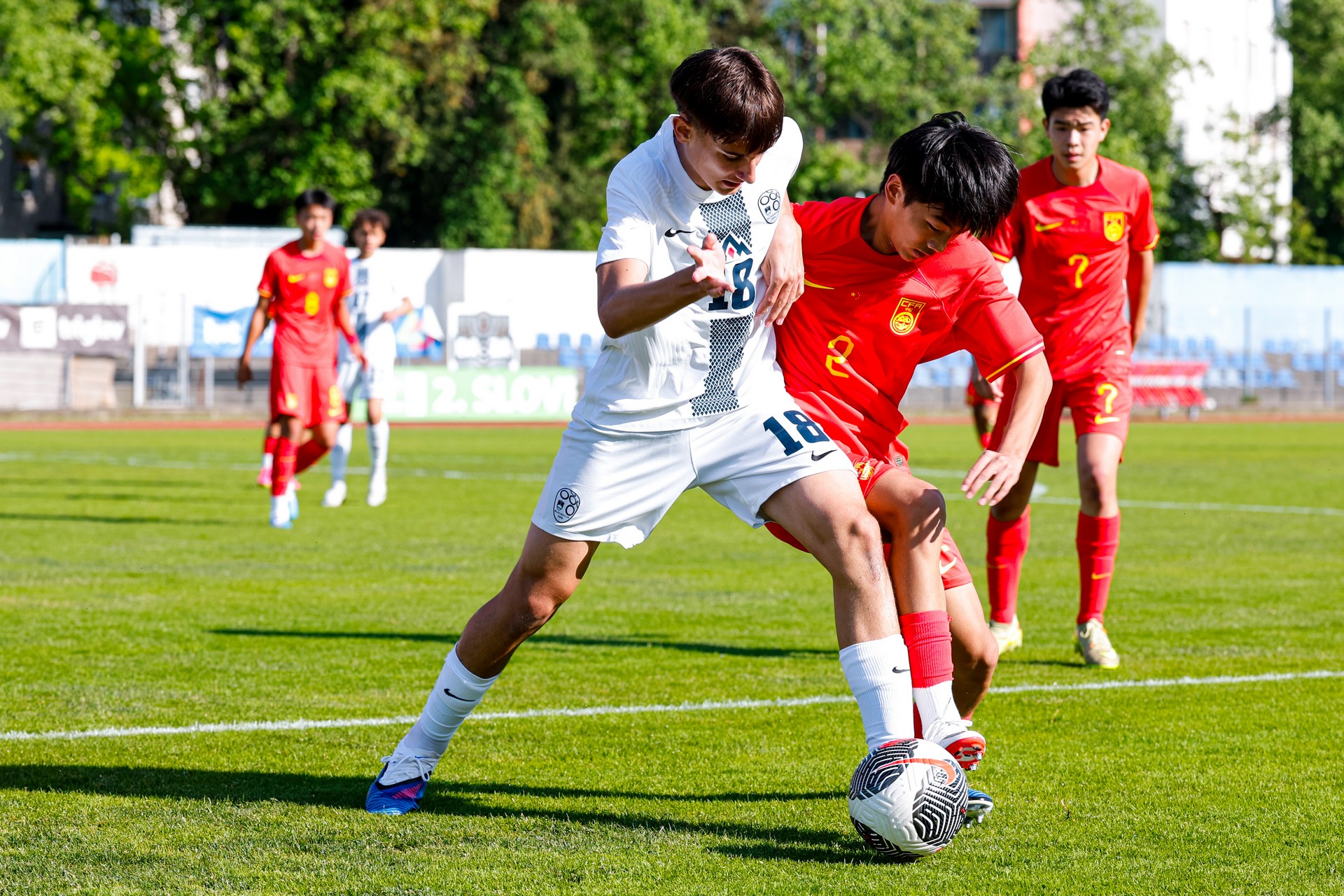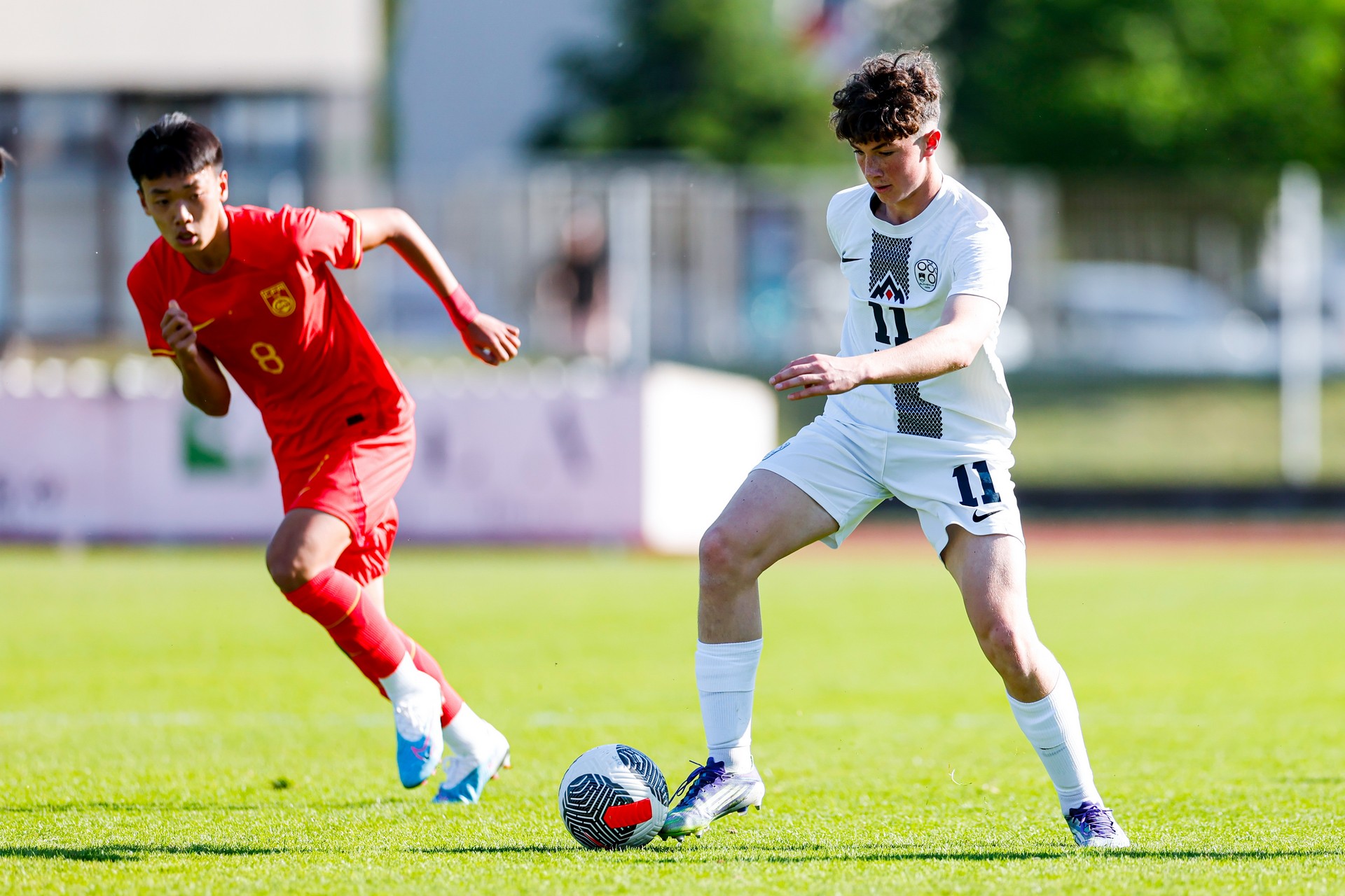 Slovenci so za prvi zadetek v Novi Gorici potrebovali manj kot pet minut igre. Aron Vučić je nevarno prodrl v kazenskem prostoru, nato pa podal do Noela Žvegla, ki je žogo po preigravanju poslal v spodnji levi kot gola Yiyja Chena. V 15. minuti se je kitajska mreža zatresla še drugič. Noel Žvegla je podal z leve strani igrišča, podajo v osrčje kazenskega prostora pa je izkoristil Emin Mešanović ter z udarcem iz prve in ob pomoči enega od kitajskih branilcev podvojil slovensko prednost.