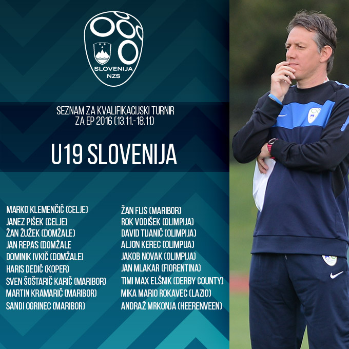 Slovenska reprezentanca do 19 let bo med 13. in 18. novembrom sodelovala na kvalifikacijskem turnirju za EP U19 2016. Selektor Igor Benedejčič je tako danes predstavil imena reprezentantov, ki bodo odpotovali na Irsko.