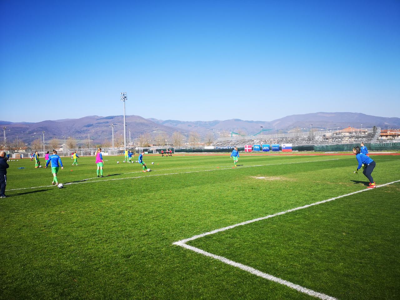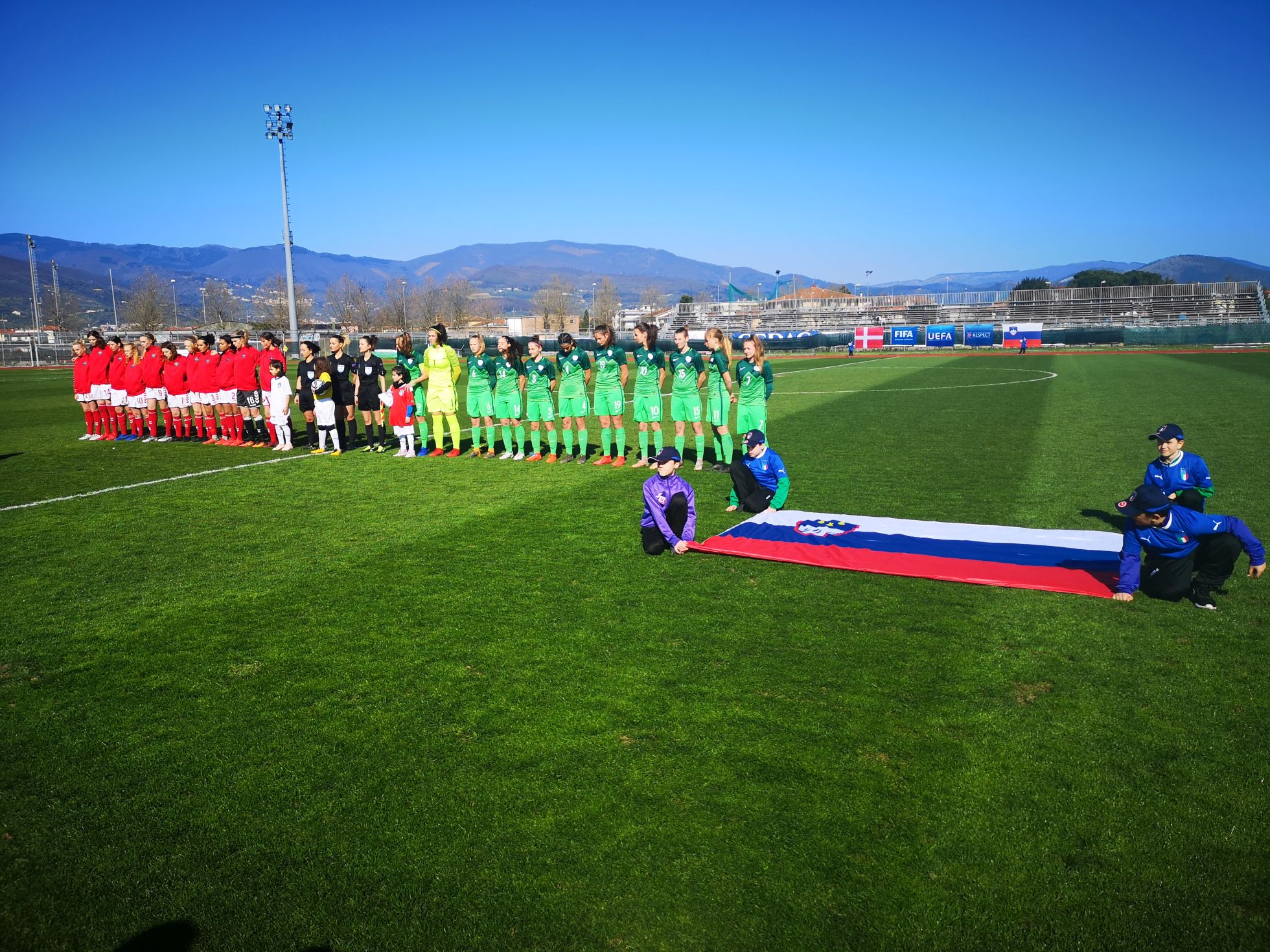Po pobudi Slovenije so nasprotnice vzpostavile ravnotežje, zadele so prečko. Na drugi strani jim je z enako mero vrnila Sara Gradišek, ki je zadela vratnico. Če potegnemo črto, je bila Slovenija v prvem polčasu konkretnejša.