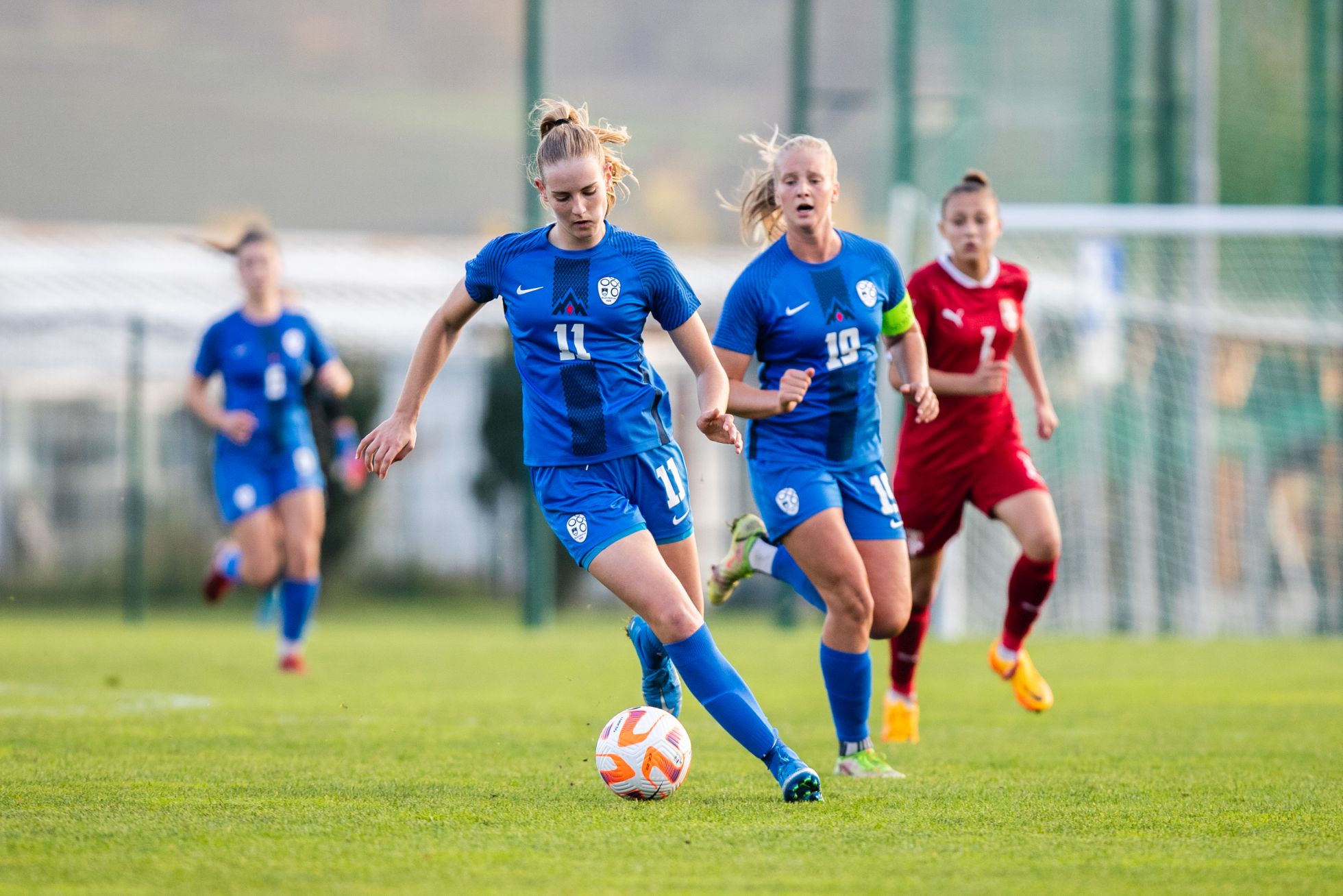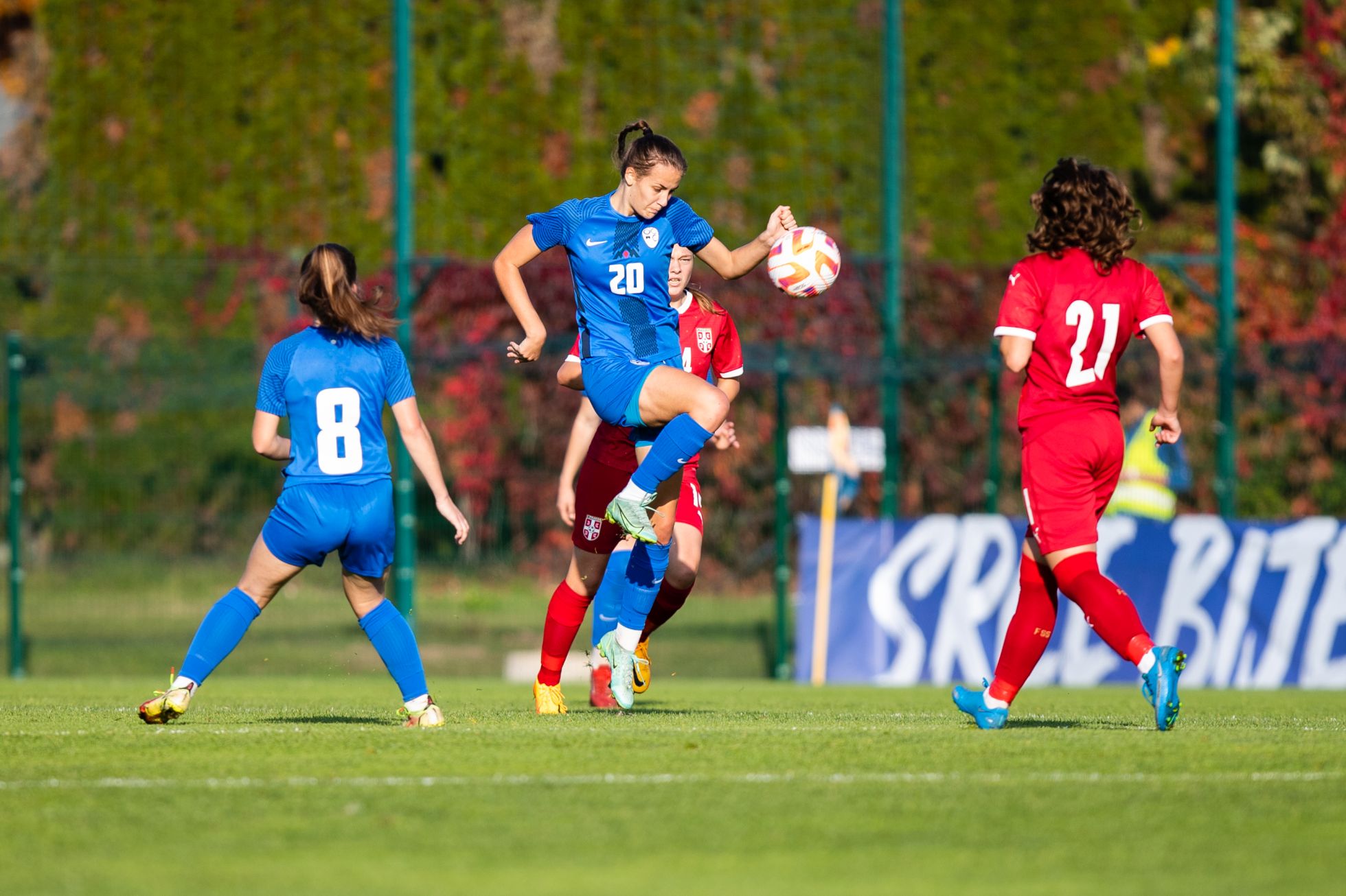 V 23. minuti je kapetanka Zara Kramžar na robu srbskega kazenskega prostora prišla do žoge, potem pa poslala predložek pred srbski gol, a je gostujoča golmanka žogo ujela. V 27. minuti je sledil nov predložek z leve strani, a Špela Gerbec z glavo žoge ni najboljše zadela. V naslednji minuti je Špela Gerbec poizkusila s strelom po tleh, a je bila srbska golmanka Tina Arsić na mestu. V 35. minuti je Špela Gerbec z globinsko podajo lepo zaposlila Zaro Kramžar, njen strel pa so gostujoče branilke zadnji hip blokirale. Po dobrih 35 minutah igre je tempo padel, spremljali pa smo gledljiv prvi polčas, ki pa ni prinesel golov.