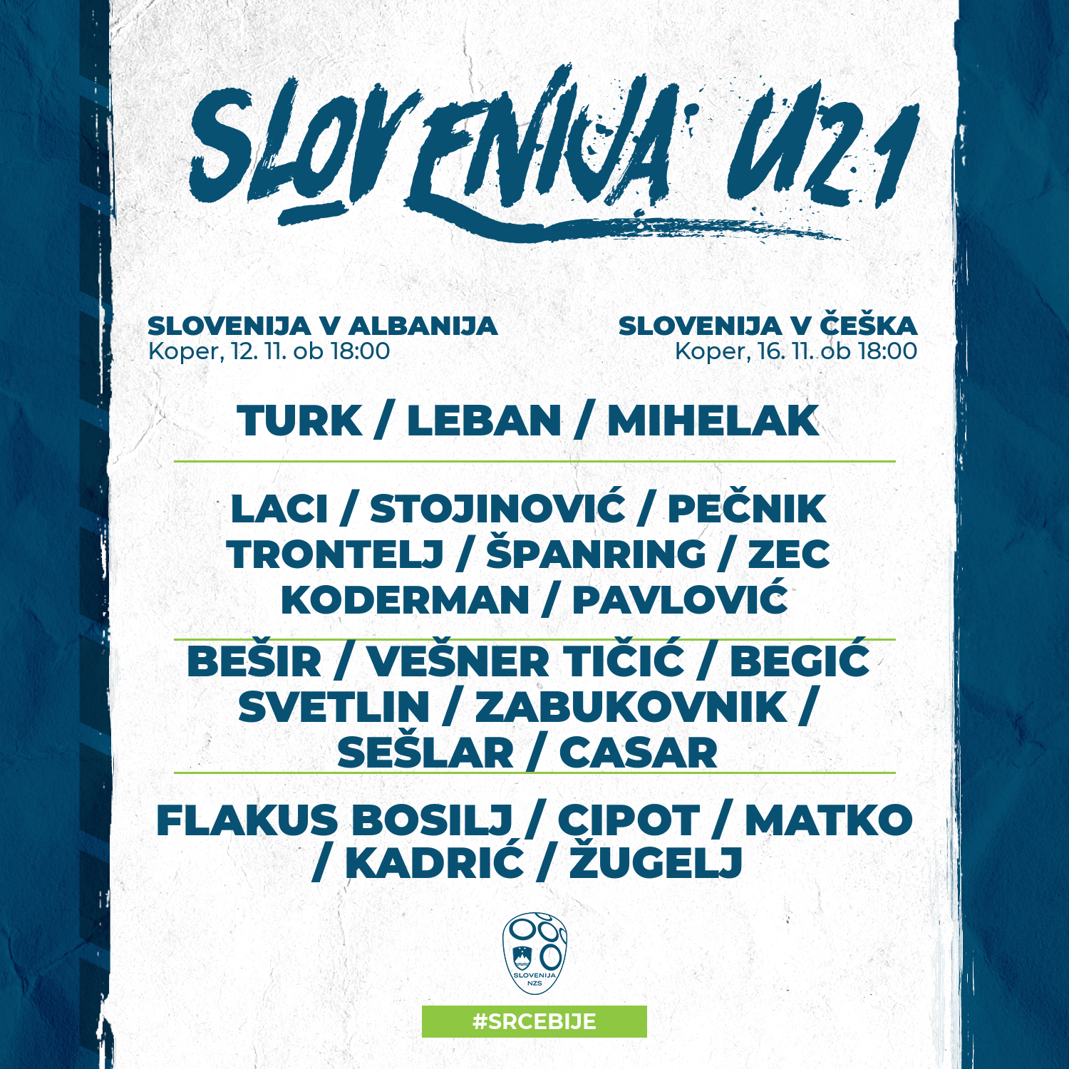 Slovenska nogometna reprezentanca do 21 let novembra nadaljuje s kvalifikacijami za Uefa evropsko prvenstvo do 21 let 2023. Selektor Milenko Aćimović je predstavil seznam reprezentantov, ki bodo proti Albaniji in Češki lovili pomembne kvalifikacijske točke.