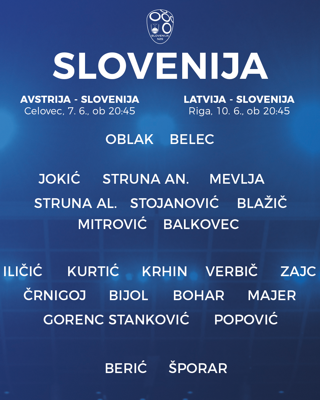 Slovenija se bo z Avstrijci merila 7. junija, z Latvijci pa tri dni pozneje v Rigi. Avstrija je trenutno na lestvici Mednarodne nogometne zveze 34., Slovenija je 63., Latvija pa 133.