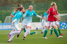 Po uspehu proti Švici (2:1 za Slovenijo) so varovanke selektorice Tine Kelenberger zasedle 2. mesto v kvalifikacijski skupini 1. V 53. minuti so povedle Švicarke, med 62. in 80. minuto pa so naše igralke režirale preobrat, gola sta prispevali Maruša Česnik in Kaja Korošec.